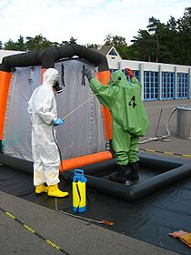 po polsku dosłownie oznacza odkażanie – postępowanie mające na celu maksymalne zmniejszenie liczby drobnoustrojów w odkażanym materiale. Dezynfekcja niszczy formy wegetatywne mikroorganizmów, a nie zawsze usuwa formy przetrwalnikowe. Zdezynfekowany materiał nie musi być jałowy. Dezynfekcja, w przeciwieństwie do antyseptyki dotyczy przedmiotów i powierzchni użytkowych. Do dezynfekcji stosuje się metody fizyczne i chemiczne
