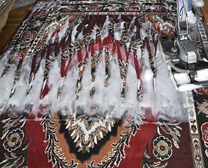 to rodzaj prania polegający na nałożeniu piany z równoczesnym wczesywaniem w powierzchnię, a potem zbieraniu związanej z brudem piany. Szamponowanie nie pozbawia tzw. apretury, filcowania, przemoczenia. Materiał jest tylko wilgotny, a wyschnięcie następuje w krótkim czasie. Jeśli chodzi o rodzaj włókna, to nie ma ograniczeń w stosowaniu metody szamponowania, ze względu na kwaśny lub zbliżony do neutralnego odczyn szamponu. Można czyścić zarówno wykładziny z runem polipropylenowym, poliamidowym, wełnianym, akrylowym. Szampon jest szczególnie przyjazny i skuteczny w rozpuszczaniu zabrudzeń na wykładzinach wełnianych.Ze względu na dość silne działanie mechaniczne, istnieje jednak możliwość uszkodzenia niektórych rodzajów wykładzin, mianowicie tuftowanych wykładzin o ciętym runie, oraz tkanych wykładzin o niższej gęstości.